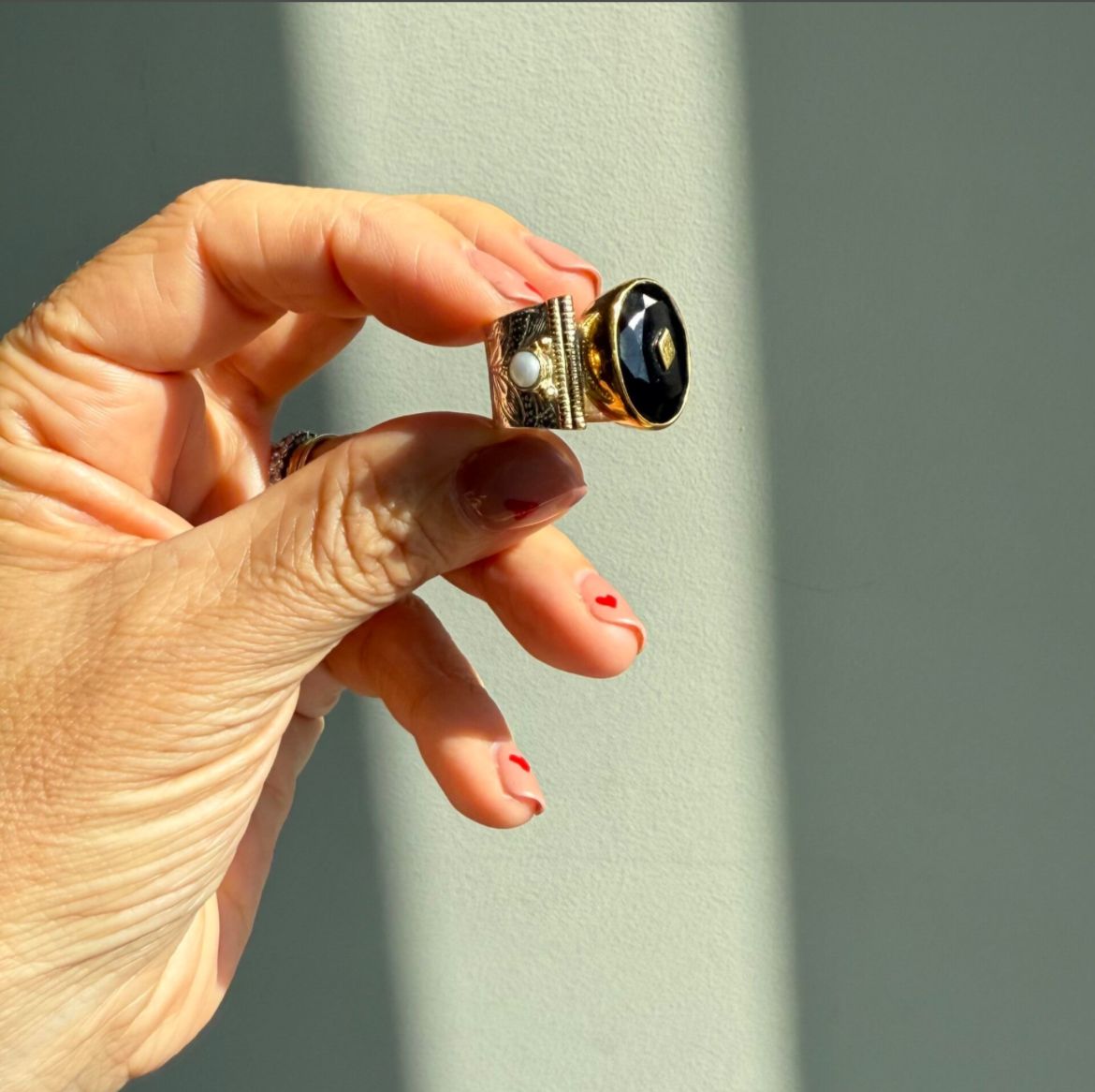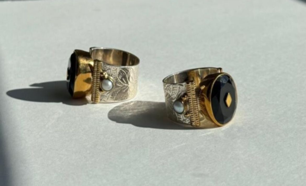 Material: Plata 925 y Brass con baño de micrones en 18k de oro con un proceso de e-coating final. Si tenes dudas sobre tu talle, te ayudamos por wa. Piedra: Black Onix