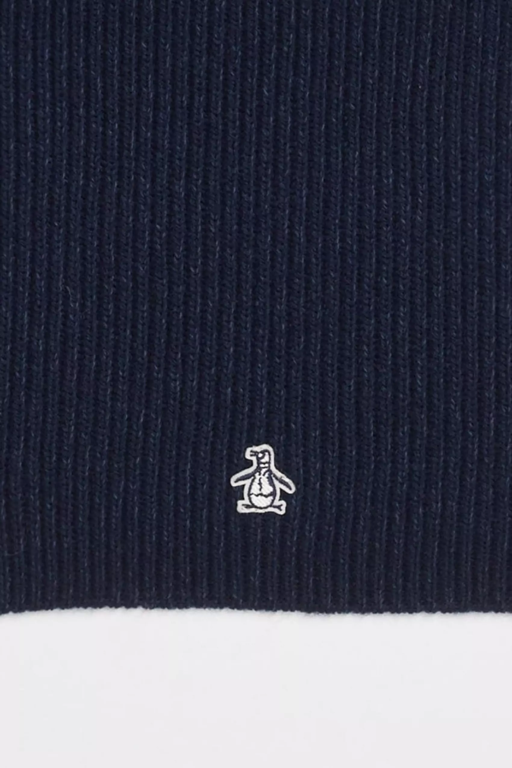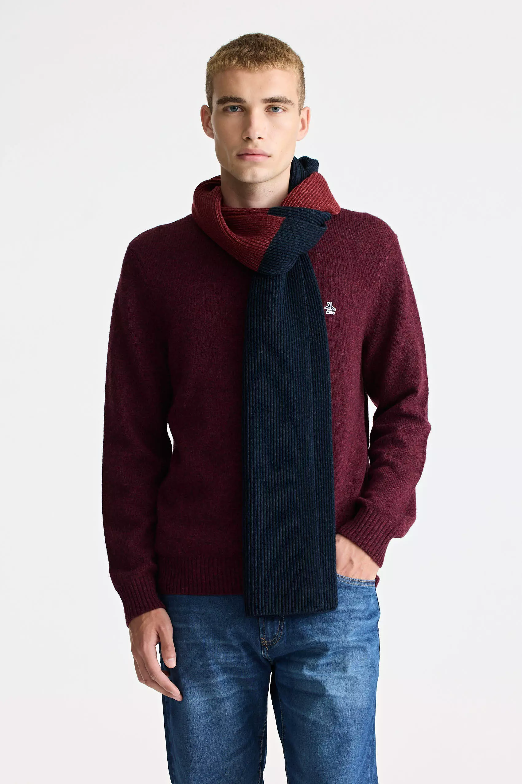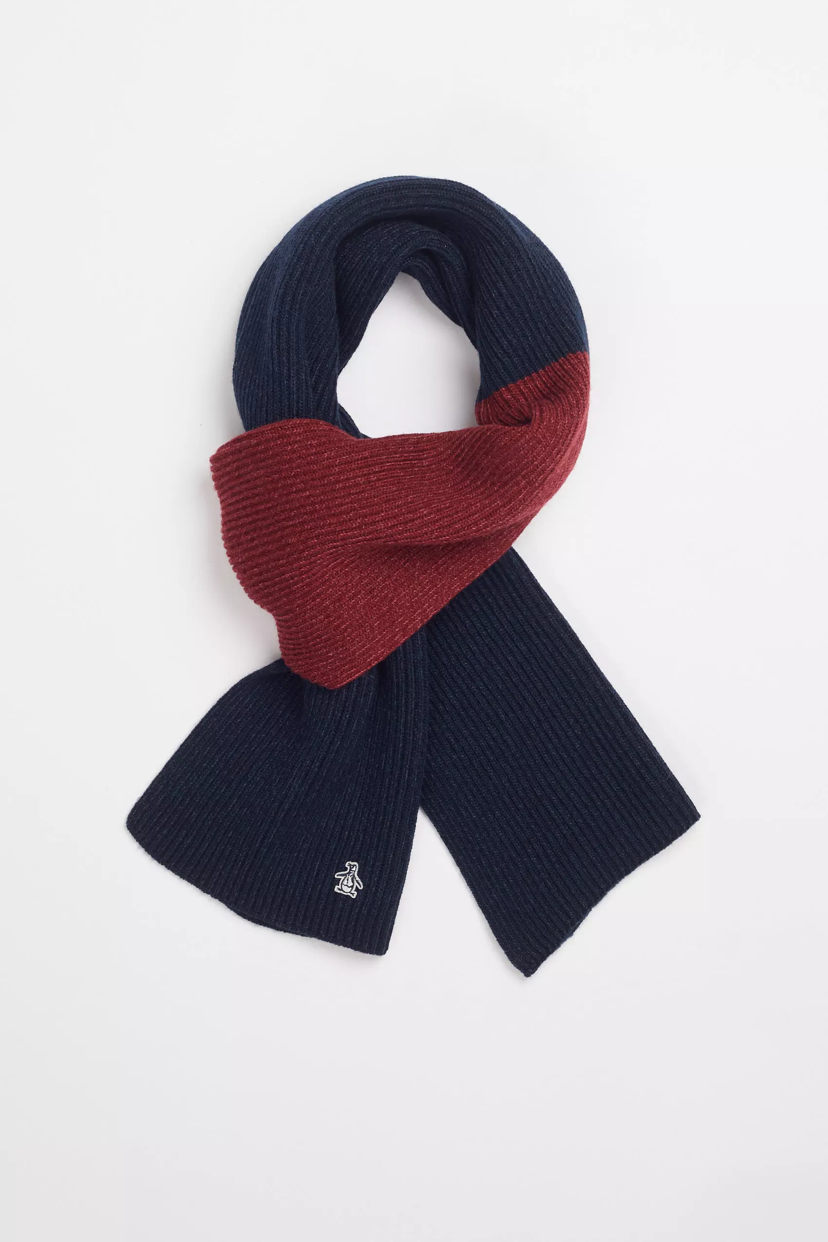 Bufanda rayada a dos colores, tejida en punto inglés, con logo parche pingüino bordado a dos colores, aplicado en centro inferior