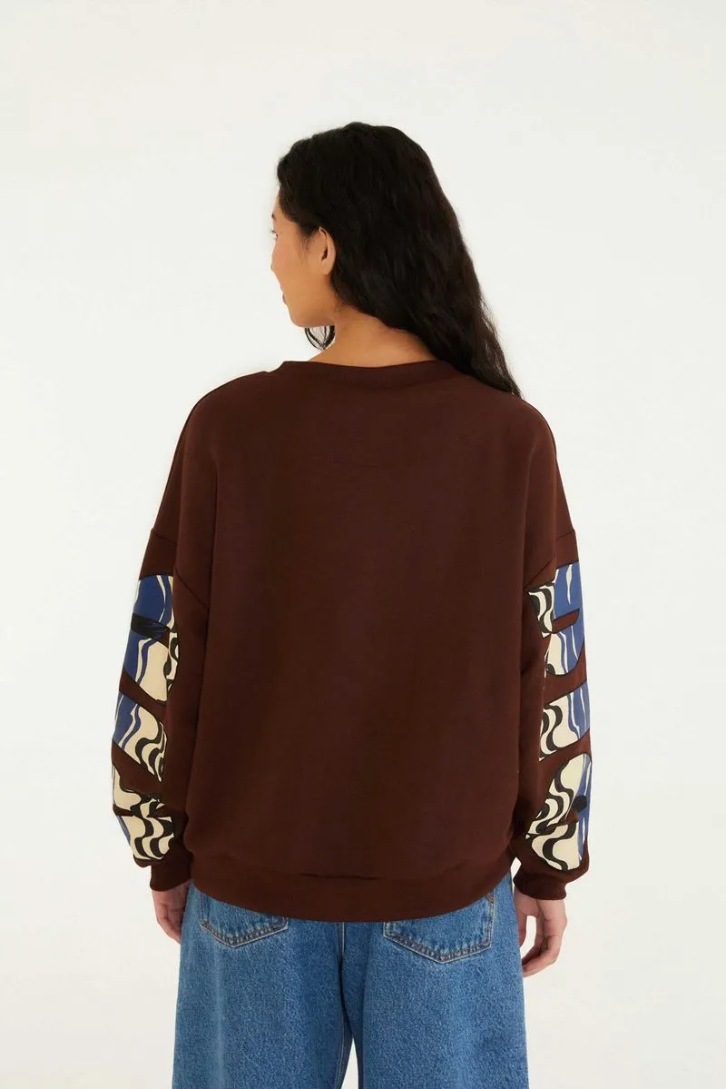 Presenta cuello redondo en un diseño clásico, enriquecido por detalles exclusivos en las mangas que le añaden un toque moderno y especial. Confeccionado en tejido confortable, es perfecto para días casuales o un paseo más tranquilo. Combiná con prendas variadas para un look único y auténtico.