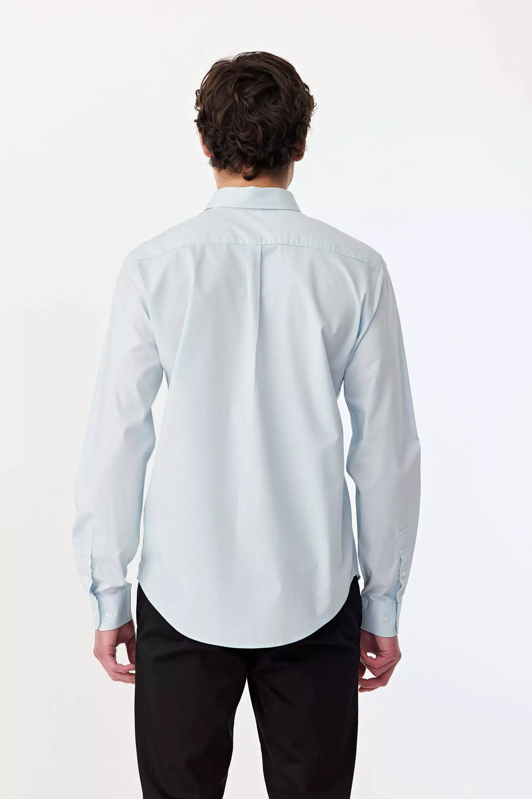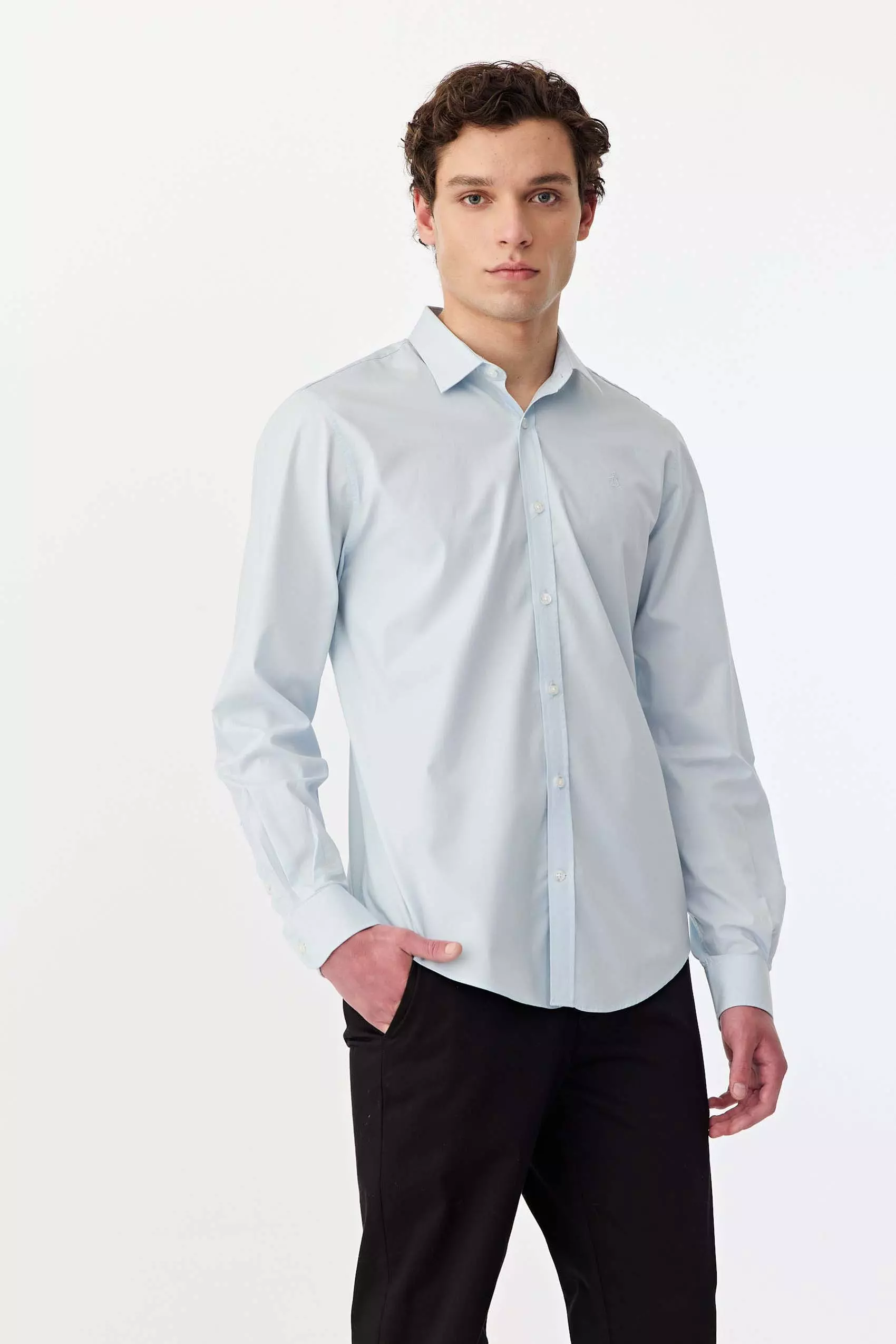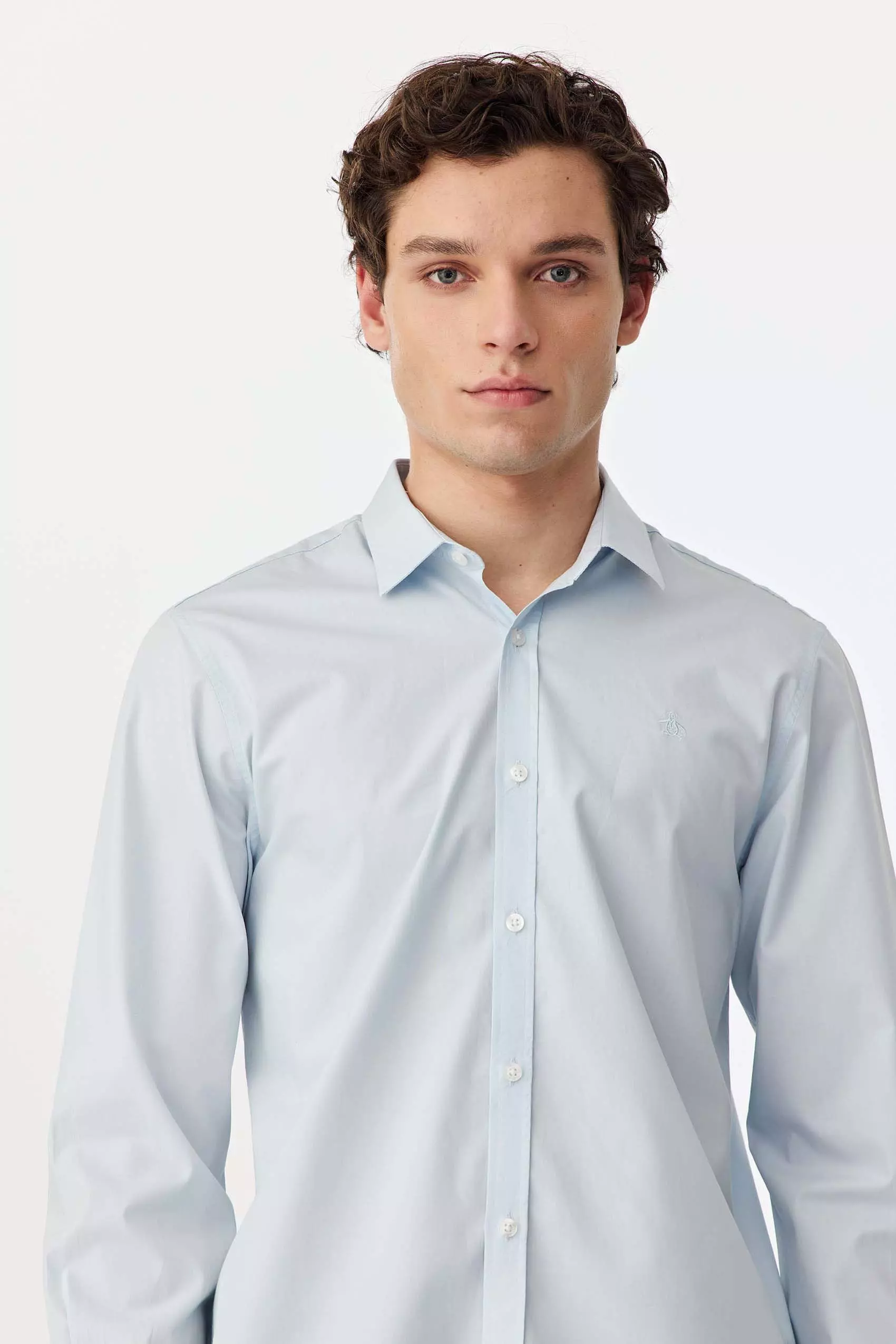 Camisa lisa manga larga, realizada en poplín algodón pima. Con logo bordado a tono. Slim fit
