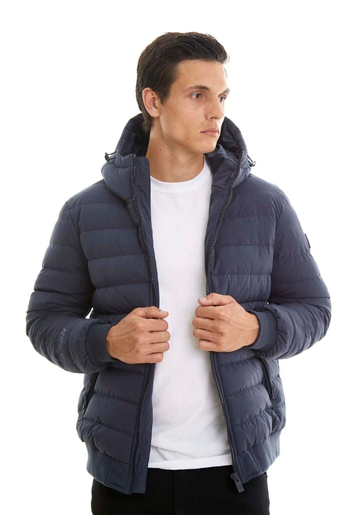 CAMPERA PUFFER DE NYLON CON CAPUCHA, CALCE REGULAR, MANGAS Y CUERPO CON PUÑOS