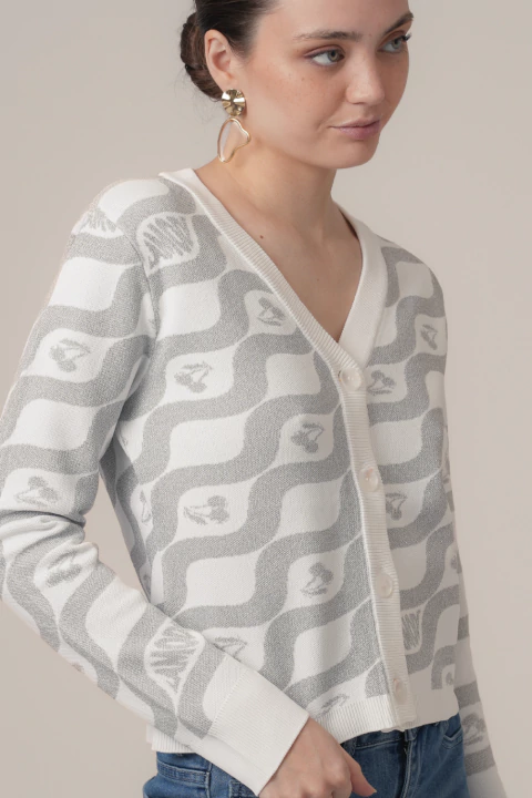 Cardigan Lili Confeccionado en una mezcla de poliéster y viscosa, este cardigan de fit ajustado realza tu figura con comodidad. Su tejido jacquard con lurex aporta un brillo sutil y moderno, mientras que los botones frontales adornados con piedras le dan un toque único y distinguido. Ideal para complementar tus looks con estilo y personalidad. MEDIDAS EN TALLE […]