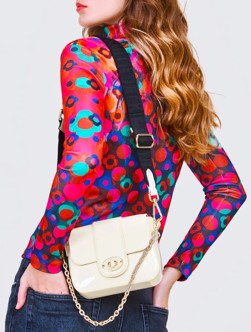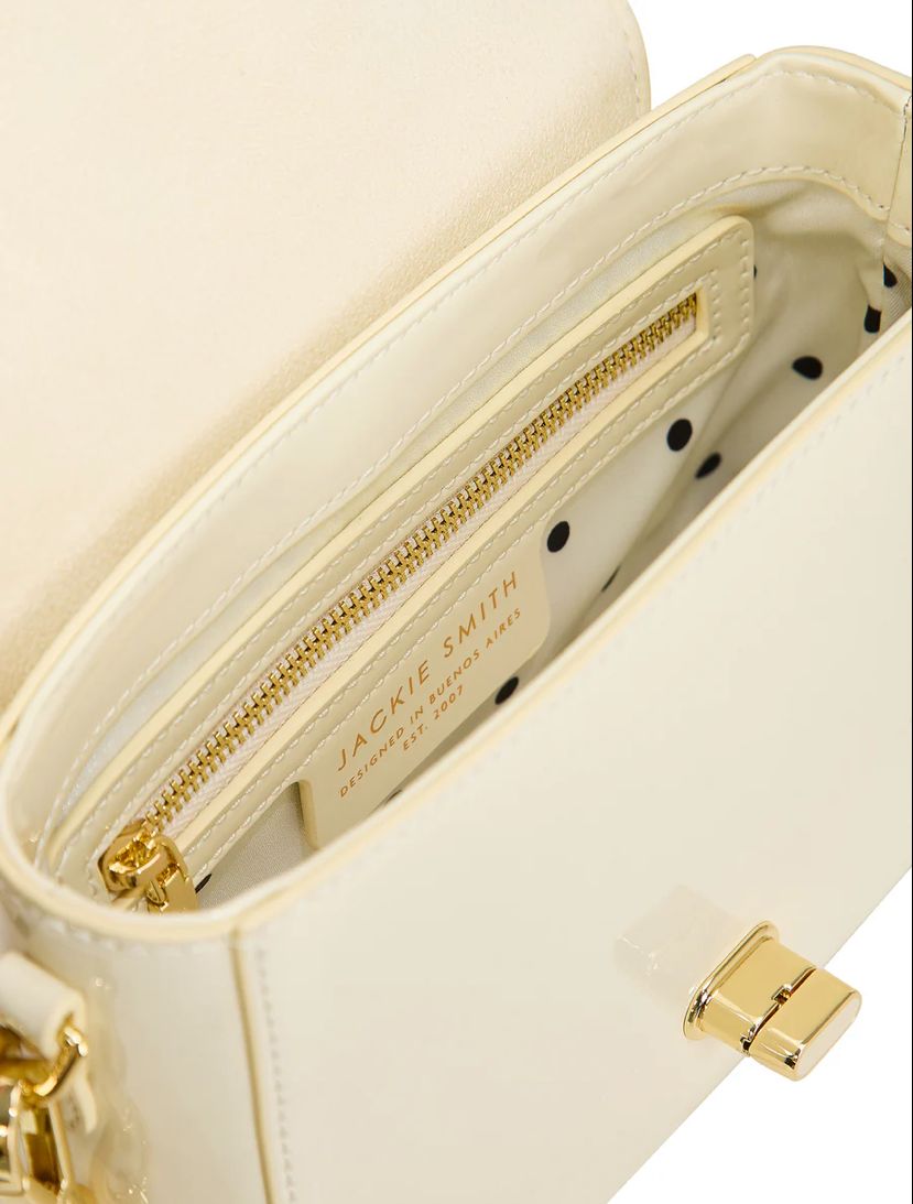 Un clásico de Jackie Smith nacido en 2009 llega en ésta hermosa reversión. Materias primas elegidas por su belleza y efecto glossy acompañan la silueta retro-inspired de ésta bella pieza de colección. Podés llevarla de día con su strap de ribbon custom design o, simplemente optando por su cadena niquelada, convertirte en el alma de […]