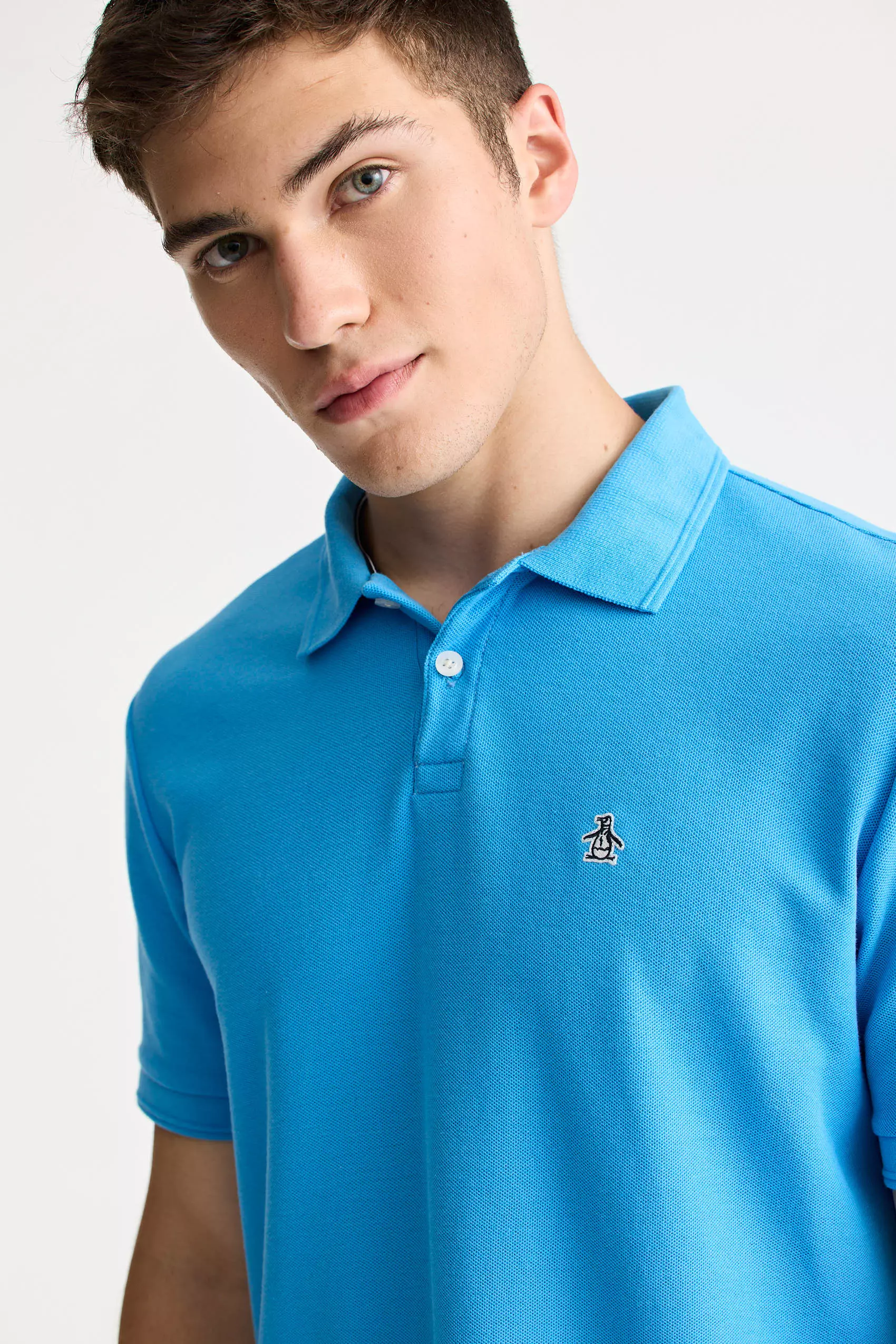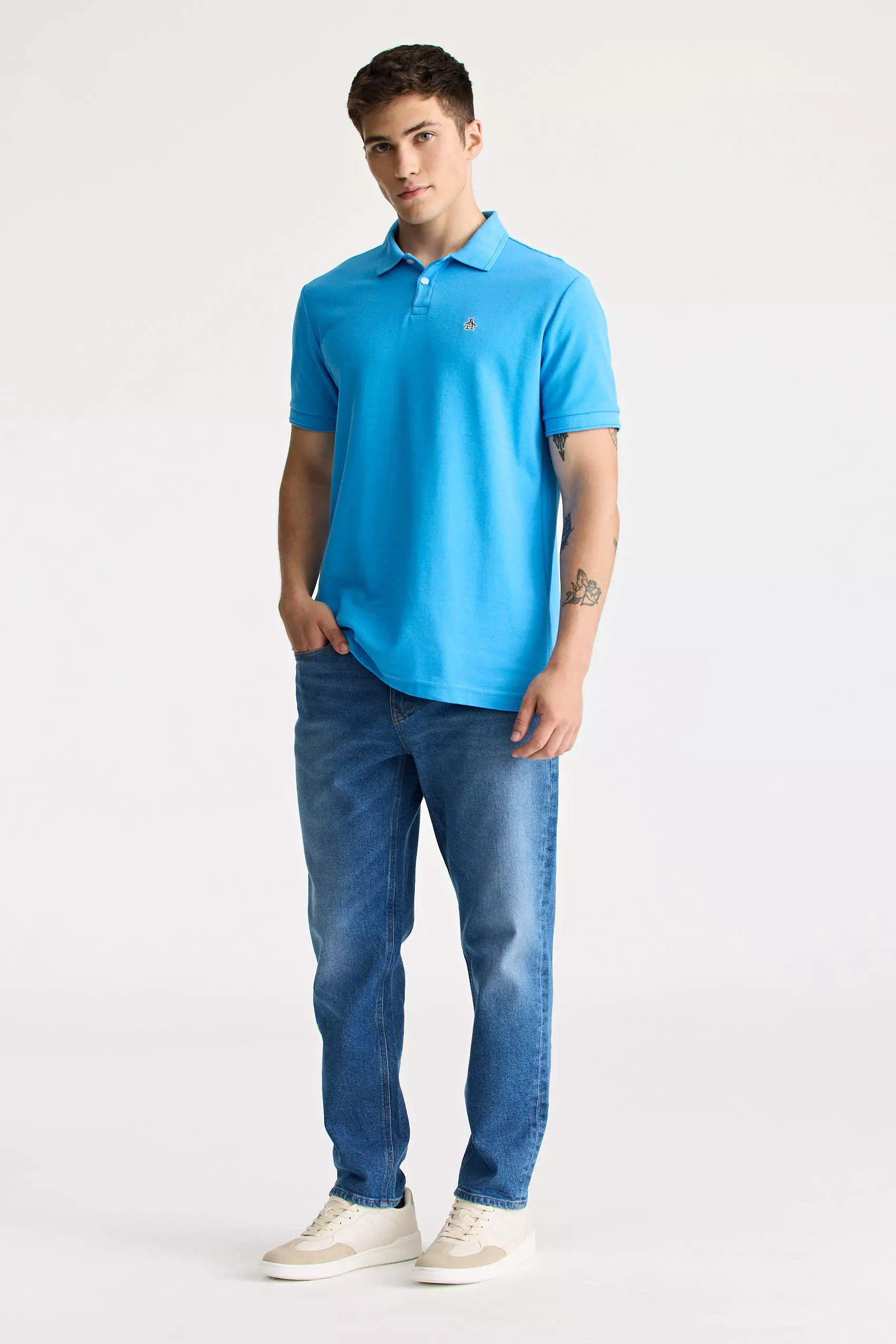 Polo clásica original Penguin, confeccionado en piqué, tiene cuello y puños tejidos en el mismo tono, cuenta con una cartera de acceso con botones con logo, las costuras laterales inferiores son abiertas y terminan en una cinta tejida con líneas azul y blanca en el interior, además, presenta logo parche bordado de pingüino en dos […]