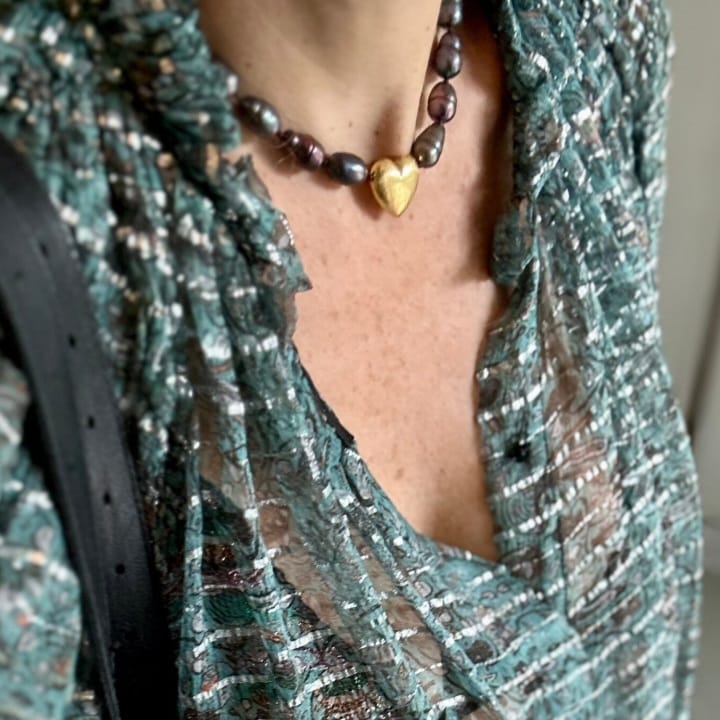 COLLAR ORISSA HEART BLACK PEARL CLARA FORNO