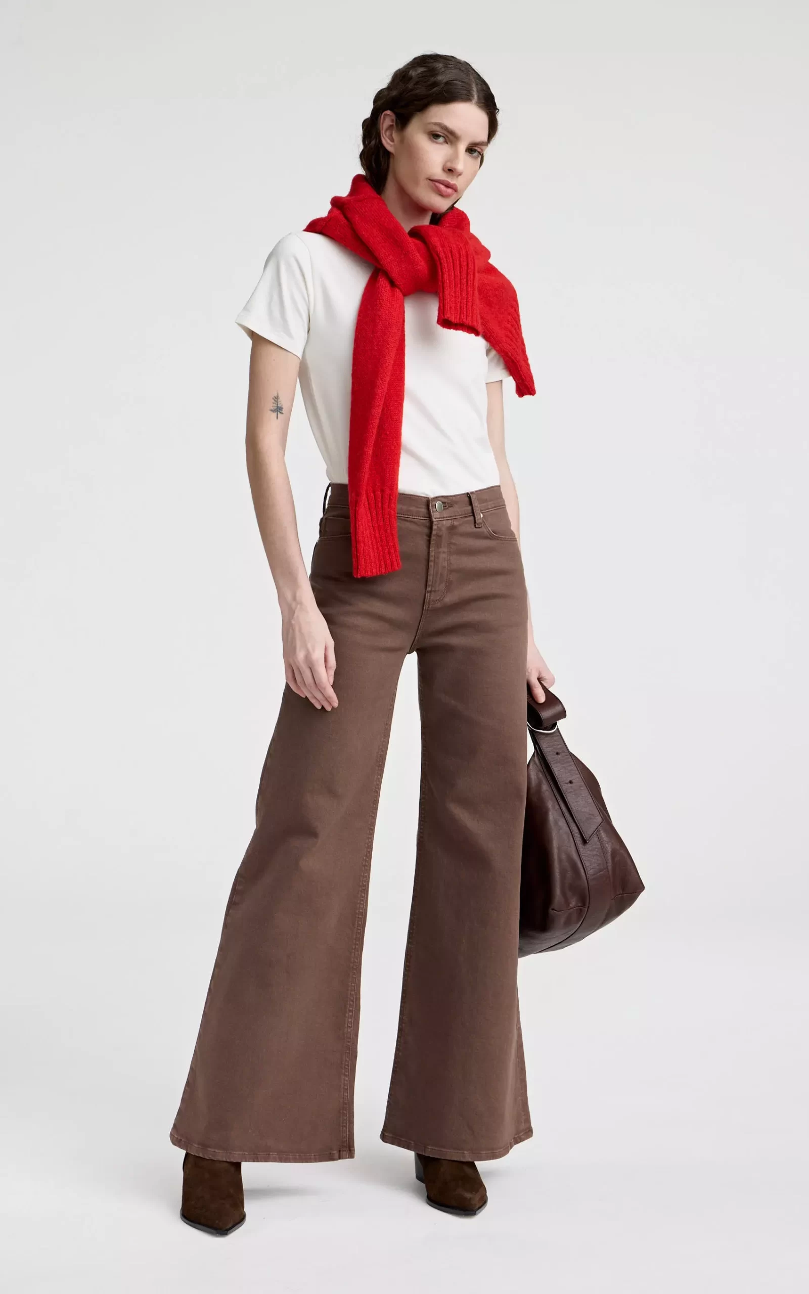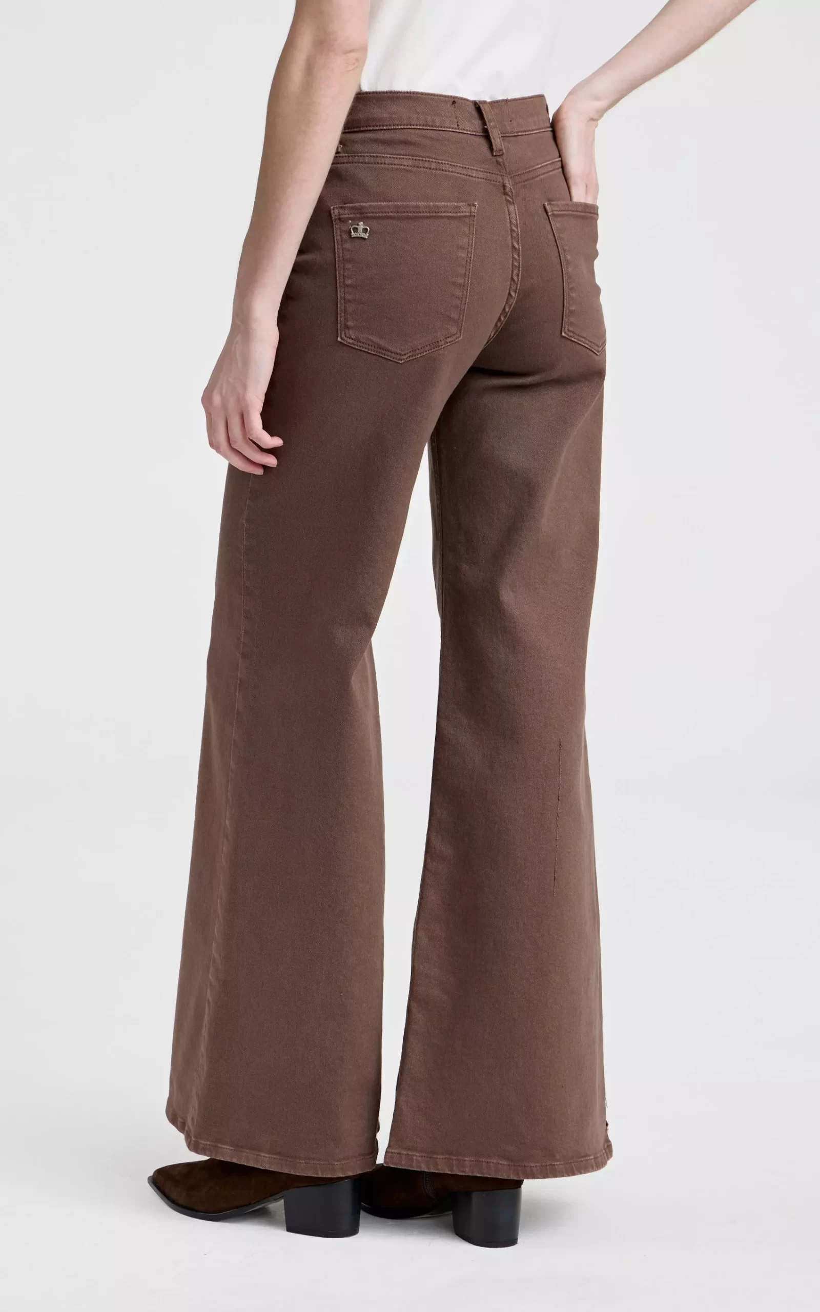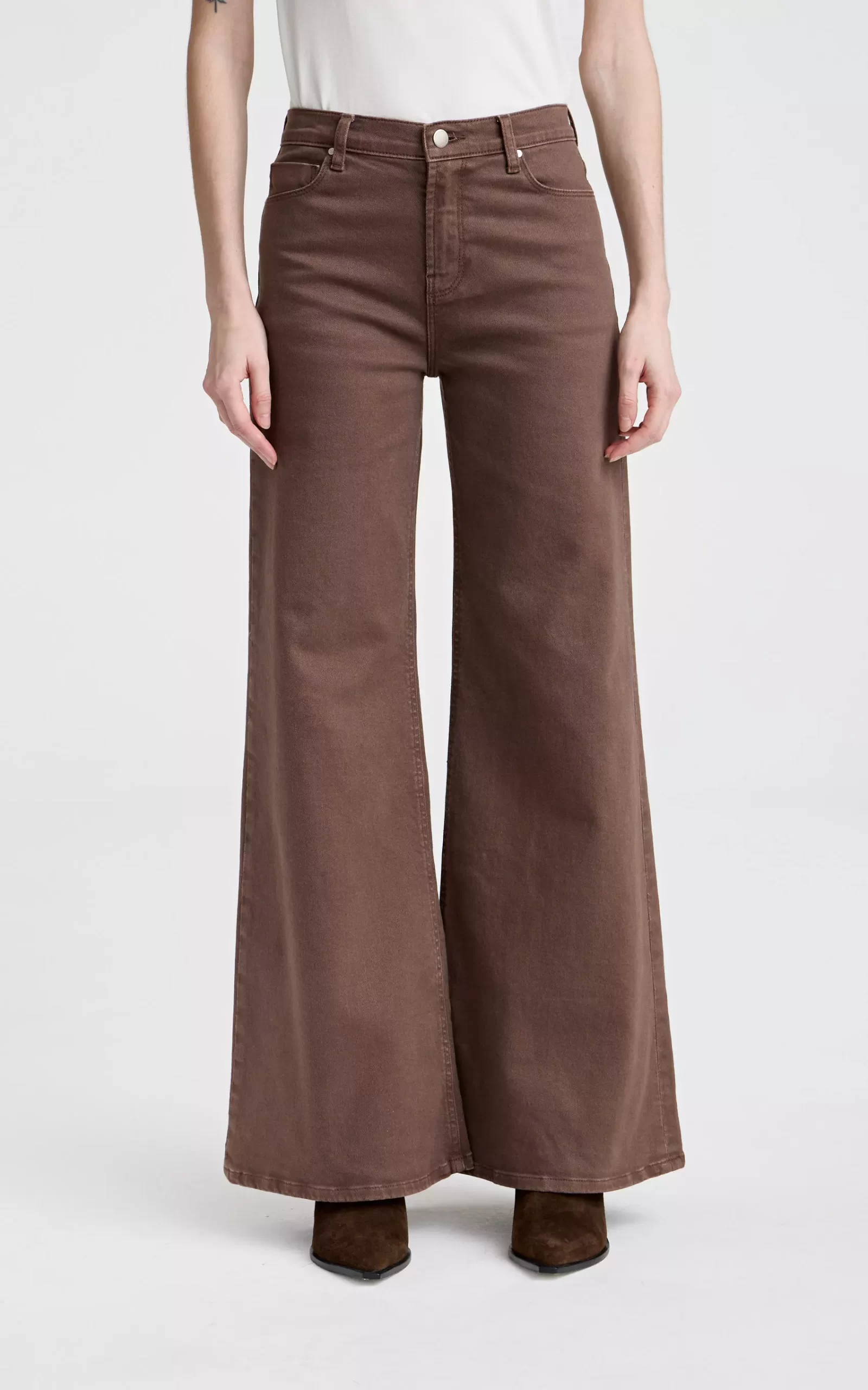 Pantalón cinco bolsillos. Tiene corte palazzo y es tiro alto. Avios metálicos. Producto importado. Composición: 70% ALGODÓN – 25.5% POLIÉSTER – 3% RAYÓN VISCOSA – 1.5% ELASTANO.