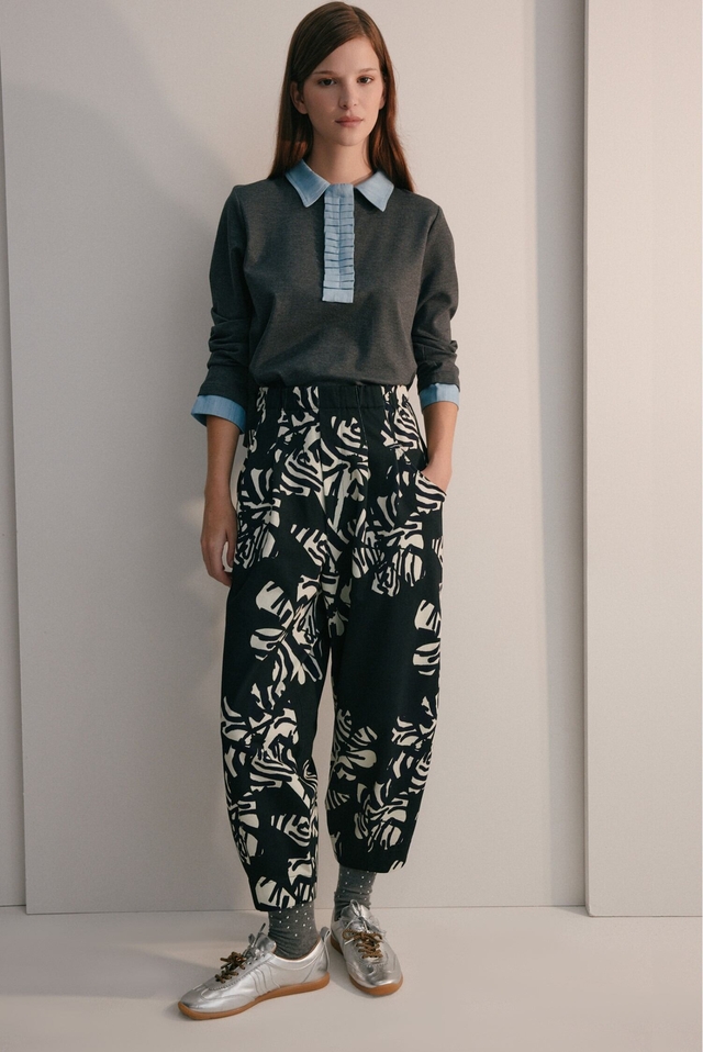 Jogger de silueta bombé confeccionado en rústico estampado con el Print “Zuri”, exclusivo de la colección FW ´26. Lleva pinzas en la cintura y en el ruedo. Posee cintura elastizada y un cordón para ajustarla. Cuenta con bolsillos delanteros. Ideal para usar en conjunto con la Bomber Zuri. Hecho en Argentina. Composición: 90% Algodón – […]