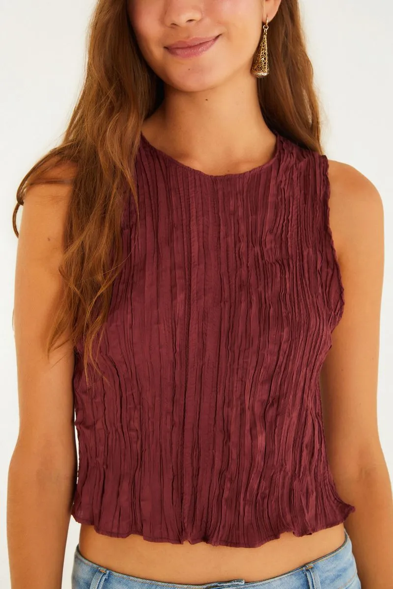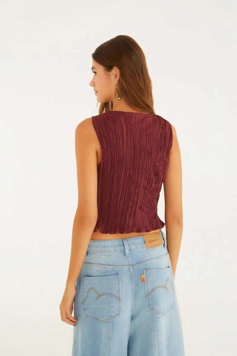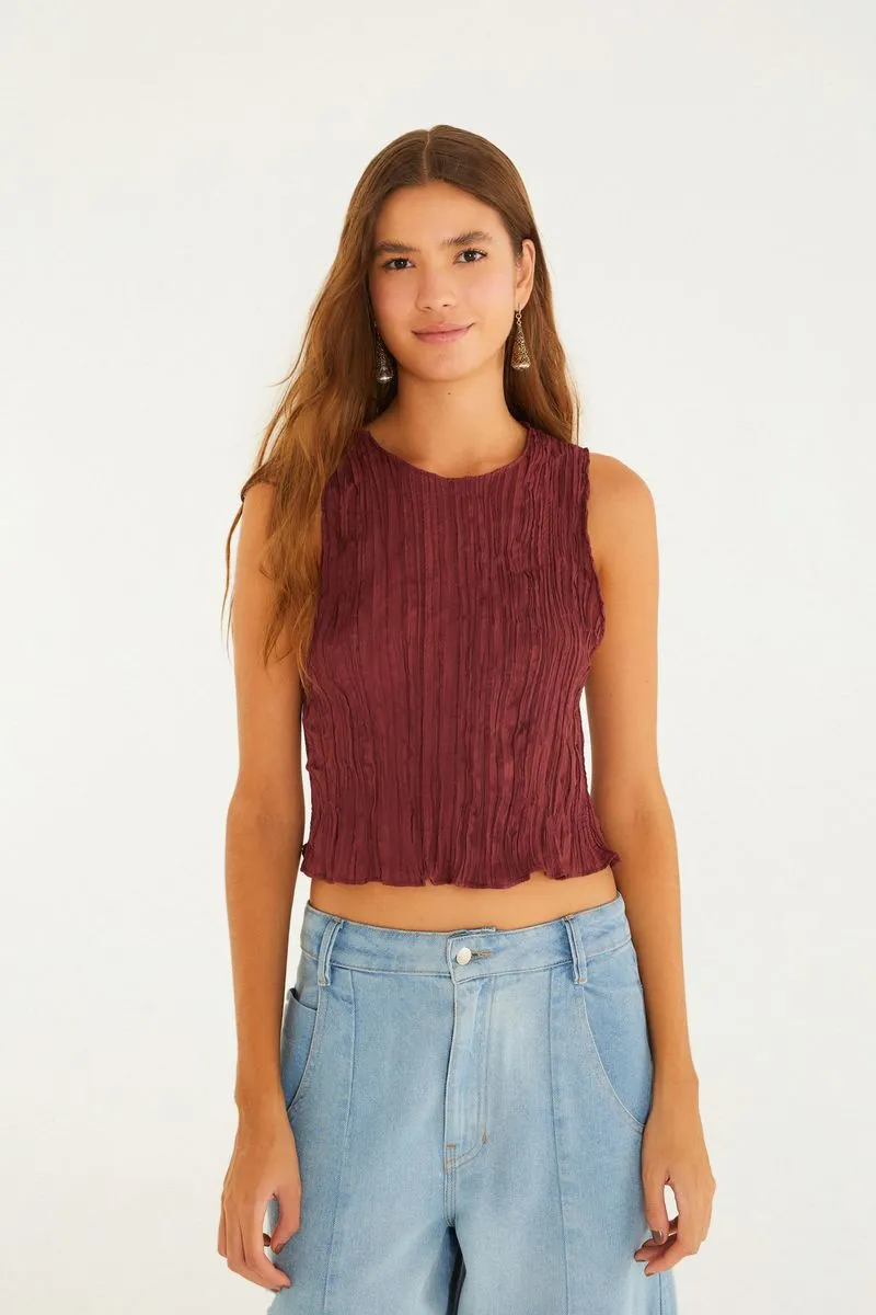 Con un toque moderno, esta pieza presenta escote redondo que garantiza comodidad y estilo. El diseño texturizado eleva el look, mientras que el ruedo ondulado aporta un encanto extra. Se recomienda lavar a mano con agua fría y jabón blanco o limpieza en seco. 100% Poliéster