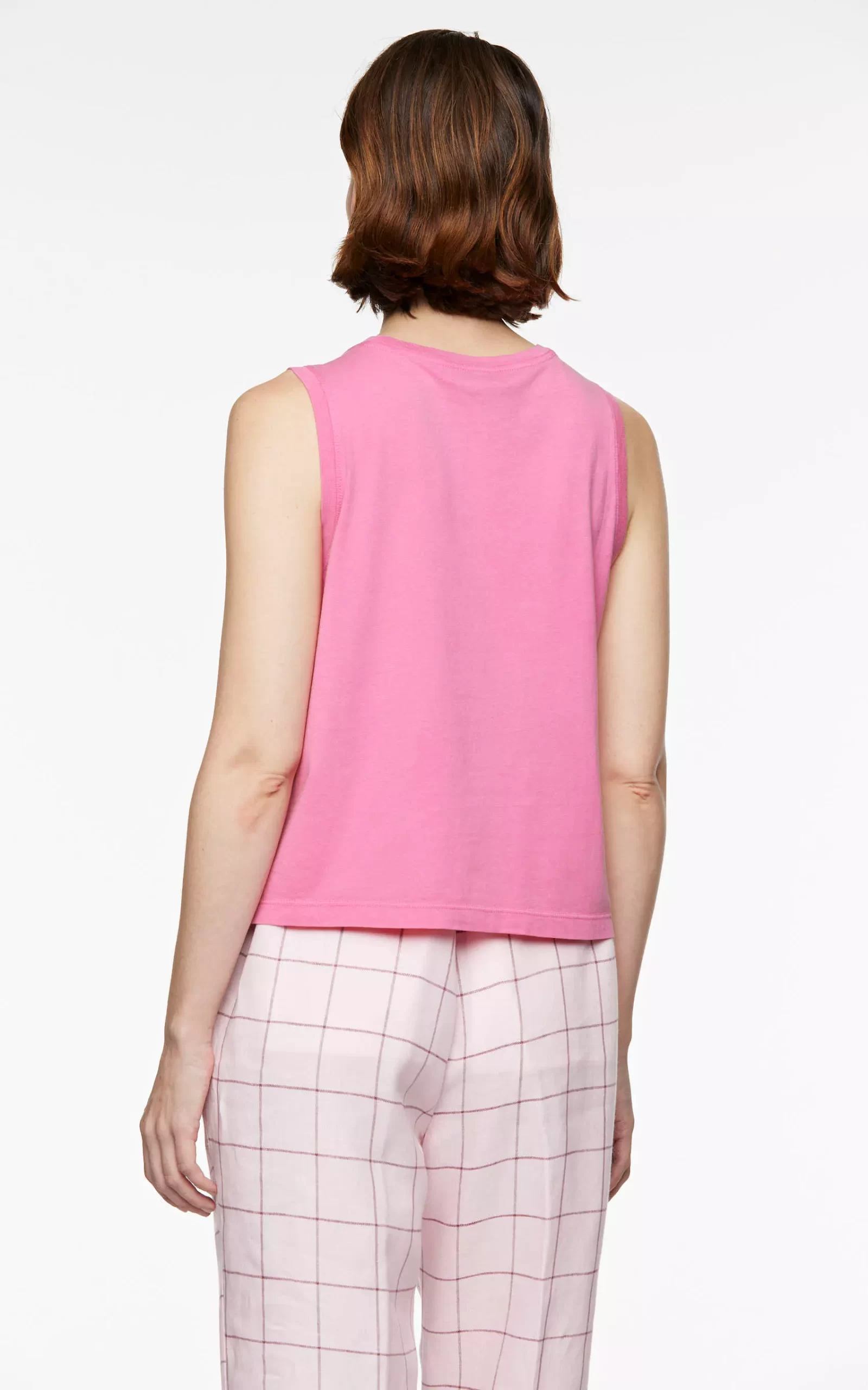 Musculosa de punto con largo sobre la cadera. Tiene frunces en laterales. Corona hd en el delantero. Lavado croma. Producto fabricado en perú. Una prenda imprescindible para la temporada, ideal para sumar a looks relajados o urbanos. Composición: 100% algodón