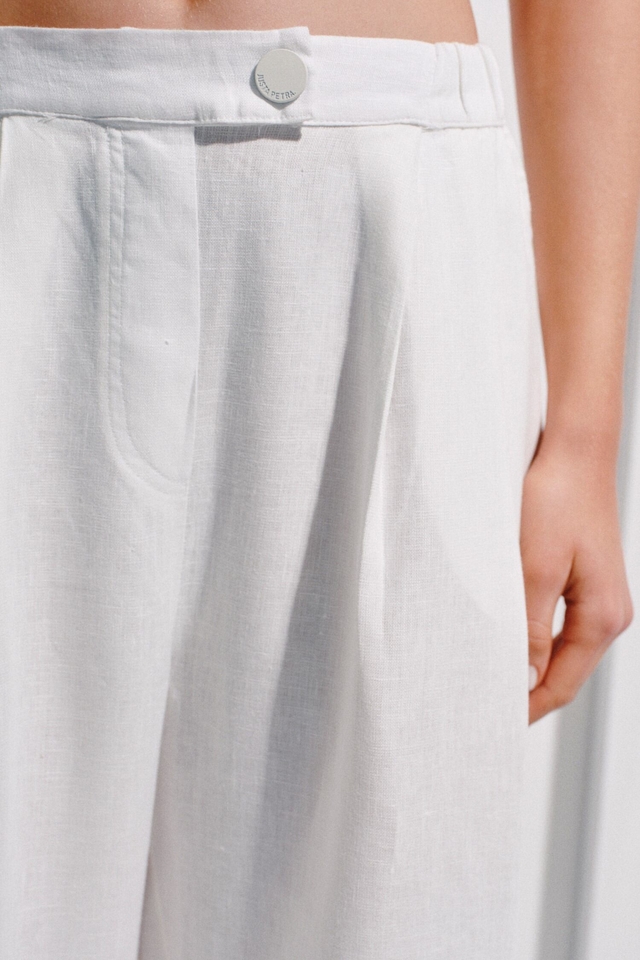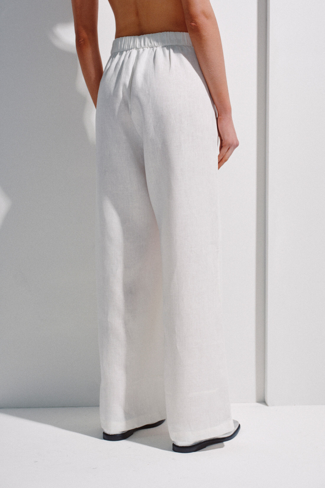 Pantalón de silueta recta confeccionado en lino liviano. Diseñado con cintura elastizada y fruncida, tablas y bolsillos en el delantero. Hecho en Argentina Composición: 100% Lino.