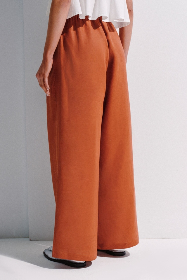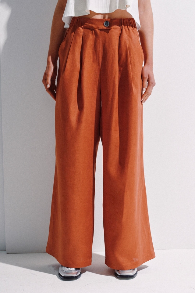 Pantalón de silueta recta confeccionado en lino liviano. Diseñado con cintura elastizada y fruncida, tablas y bolsillos en el delantero. Hecho en Argentina Composición: 100% Lino.