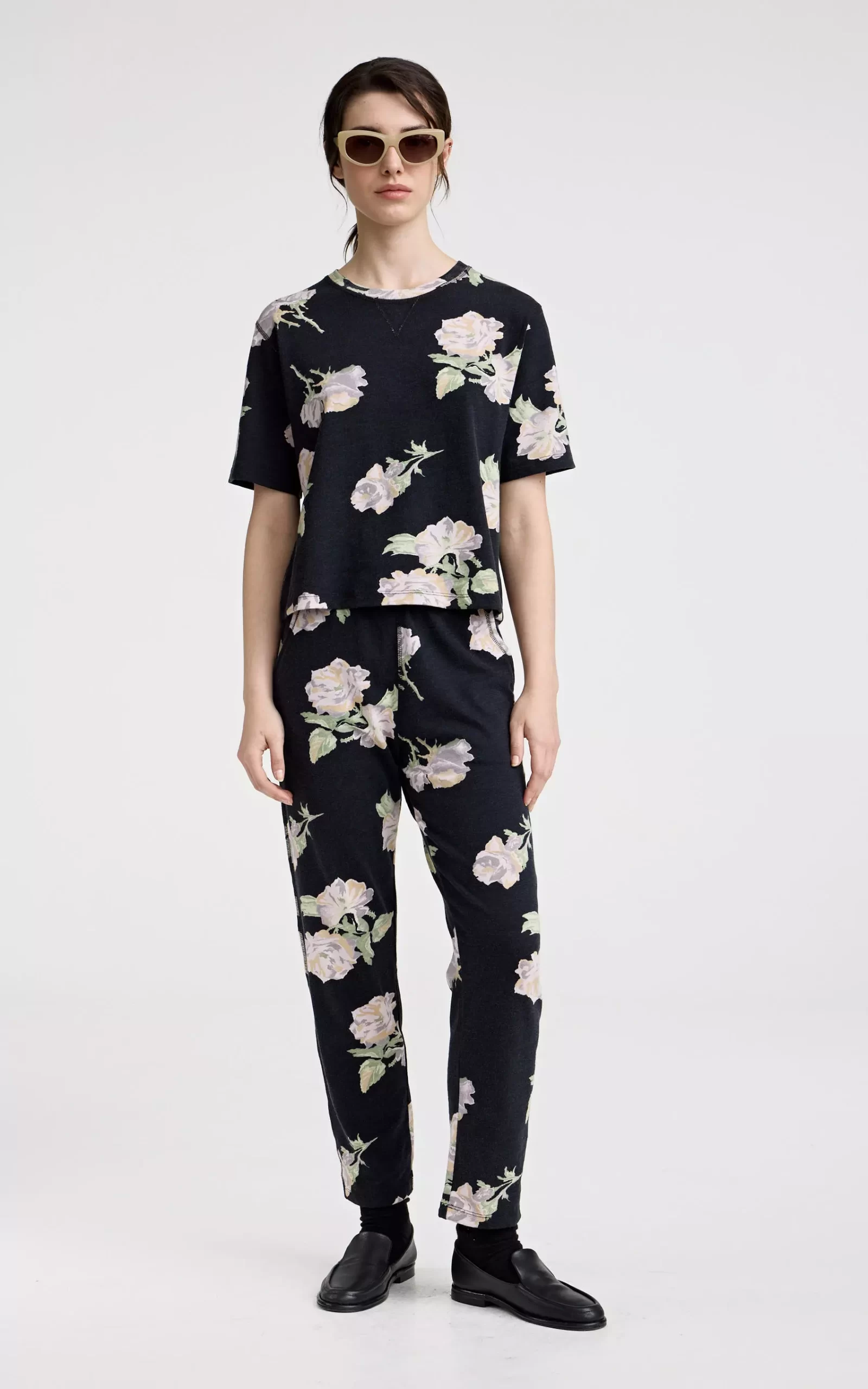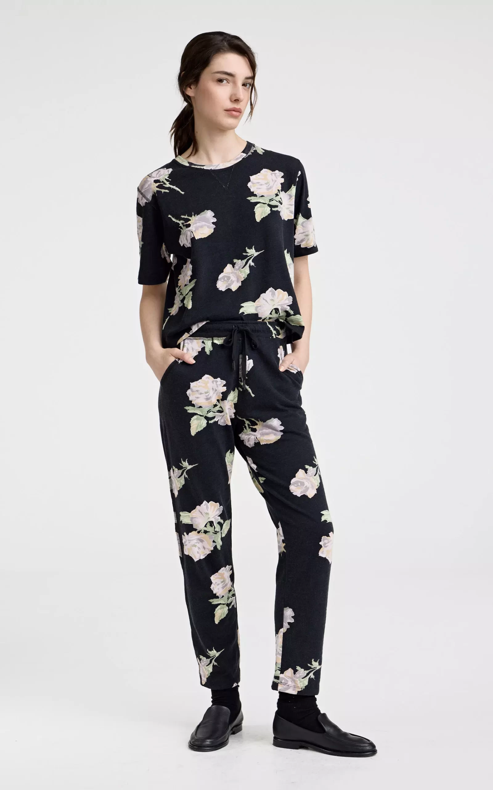 Pantalón de punto full print, largo hasta los tobillos, lleva bolsillos en el delantero, bolsillos aplicados en la espalda, cintura con elastico interno y cordon diferenciado. Lleva corona bordada en el delantero. Producto fabricado en Perú. Composición: 100% ALGODÓN.