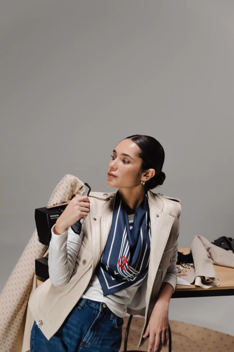 Pañuelo de diseño geométrico, con una sofisticada combinación de azul marino y líneas blancas que crean un patrón moderno y equilibrado. Su estilo atemporal lo convierte en un accesorio versátil, ideal para aportar un toque chic tanto a looks formales como casuales. Perfecto para llevar al cuello, en el cabello o como detalle en bolsos, […]