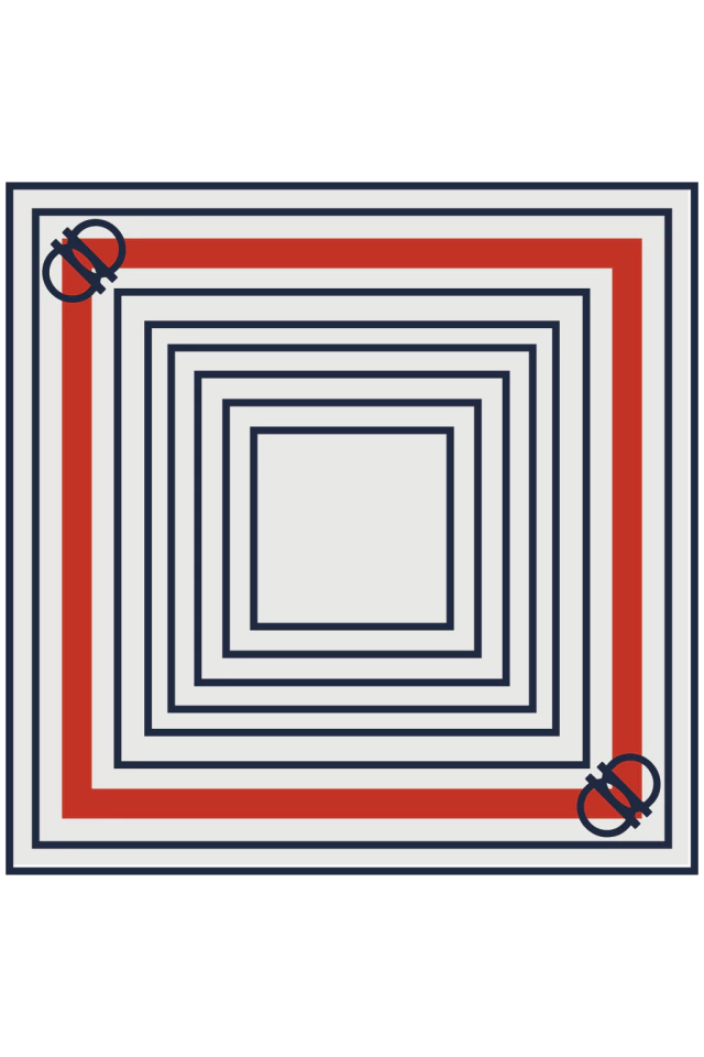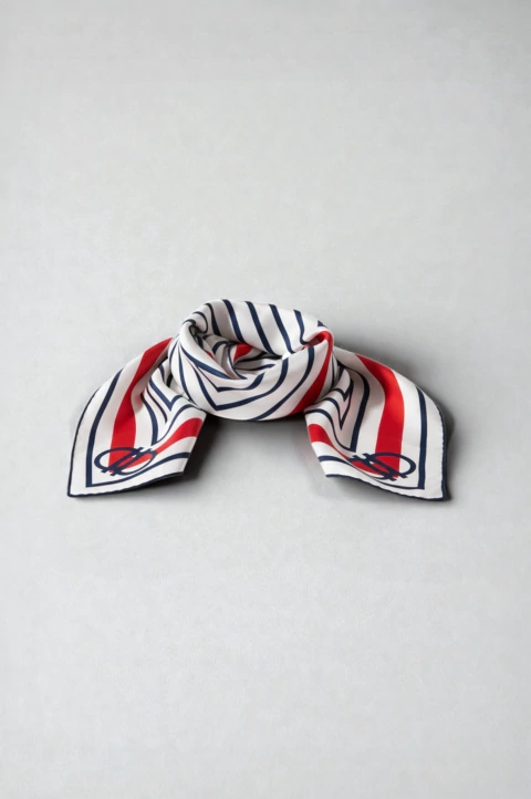 Pañuelo cuadrado de 70 x 70 cm con diseño geométrico de líneas concéntricas en tonos azul marino, blanco y rojo. Un modelo de estilo limpio y equilibrado, fácil de combinar con distintos looks. Se puede usar al cuello, en el pelo o como complemento en el bolso. Ideal para el día a día y para quienes prefieren […]