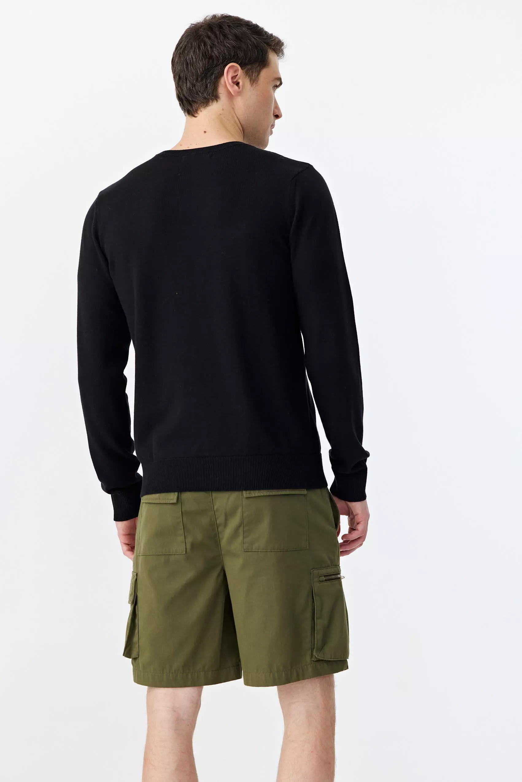 Sweater escote redondo liso, manga larga. Logo bordado en pecho.
