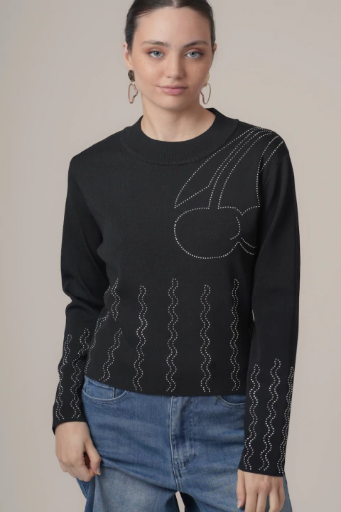 Sweater Emma : Confeccionado con una mezcla de viscosa y poliamida, ofrece un fit ajustado que realza tu figura con elegancia. Sus detalles en hotfix aportan un brillo sutil y sofisticado, ideal para destacar en cualquier ocasión. MEDIDAS TALLES S Largo: 50 cm. Ancho: 46 cm. Largo de manga: 56 cm. MEDIDAS TALLES M Largo: 52 cm. Ancho: […]